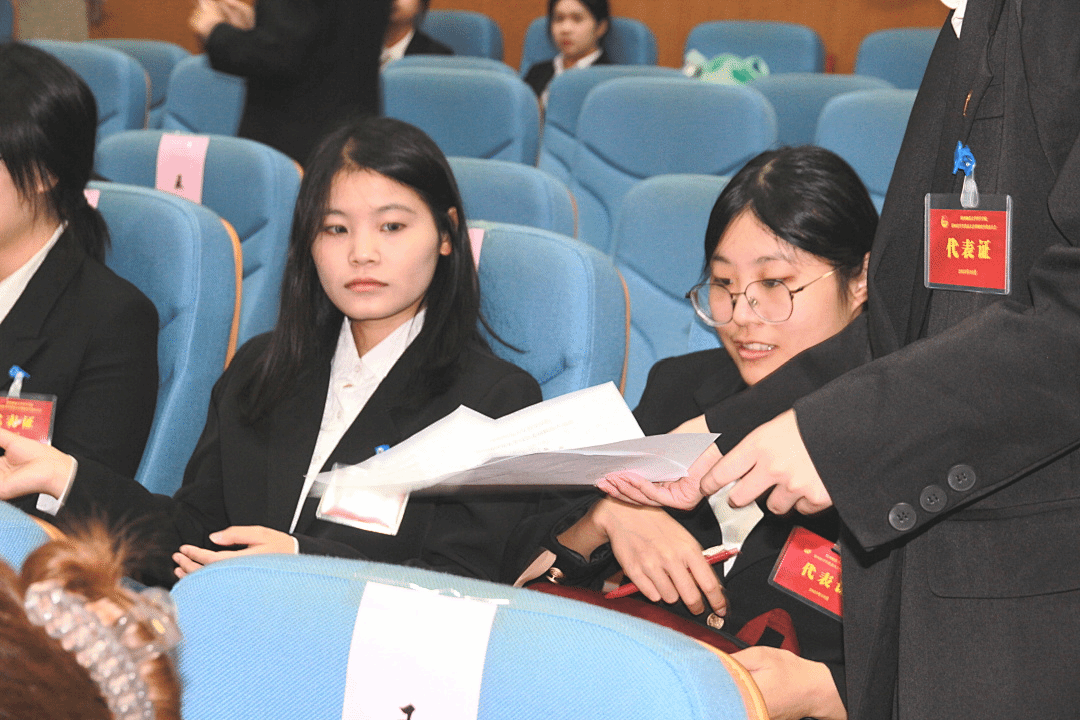 会上,大会主席团成员吴静怡、张丁睿、王思琪分别作大会《筹备工作报告》《代表资格审查报告》《提案工作报告》,全面梳理大会筹备细节、代表资质审核情况及学生提案收集与处理进展,确保会议各项工作公开透明;学院第三届学生会执行主席习蕊、第三届研究生会执行主席张家毅先后作工作报告,系统回顾过去一年时间学院学生会、研究生会在服务同学、组织活动、助力成长等方面的工作成果,深刻剖析不足,并对未来工作提出展望。随后,研究生专职辅导员张凡、本科生专职辅导员吴承恒分别就大会《选举办法》《总监票人、监票人、总计票人、计票人名单》进行说明,经全体代表认真审议,均获一致通过。