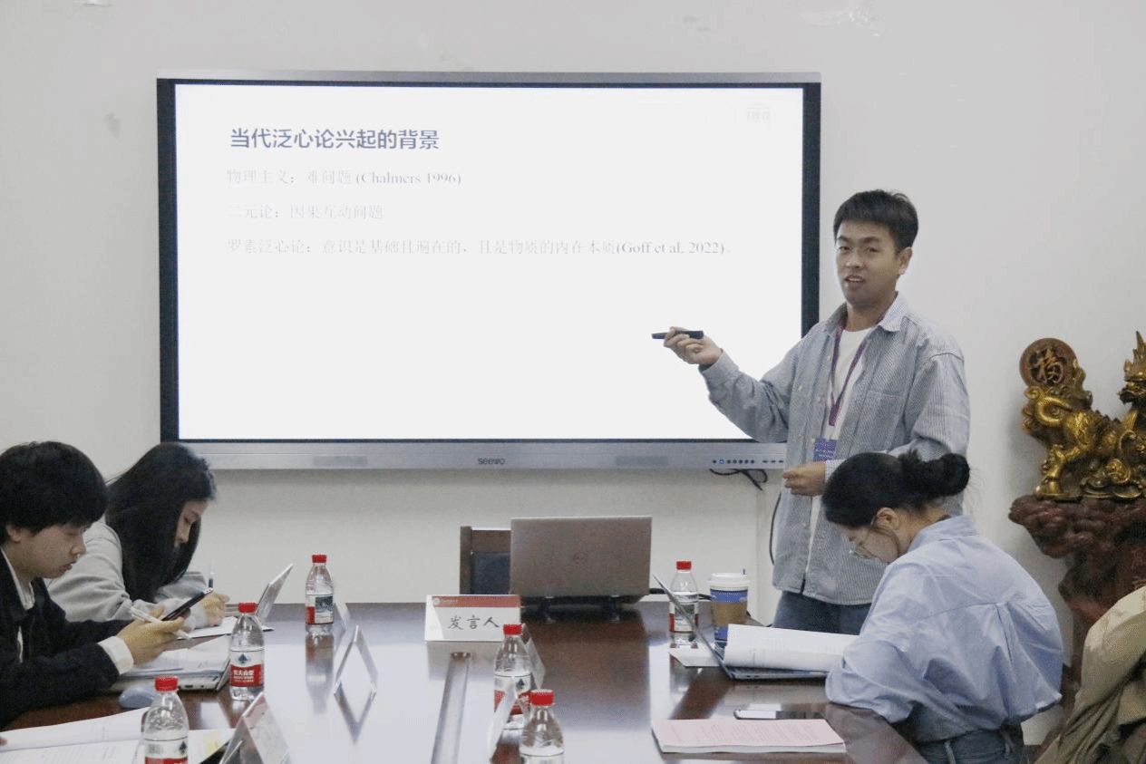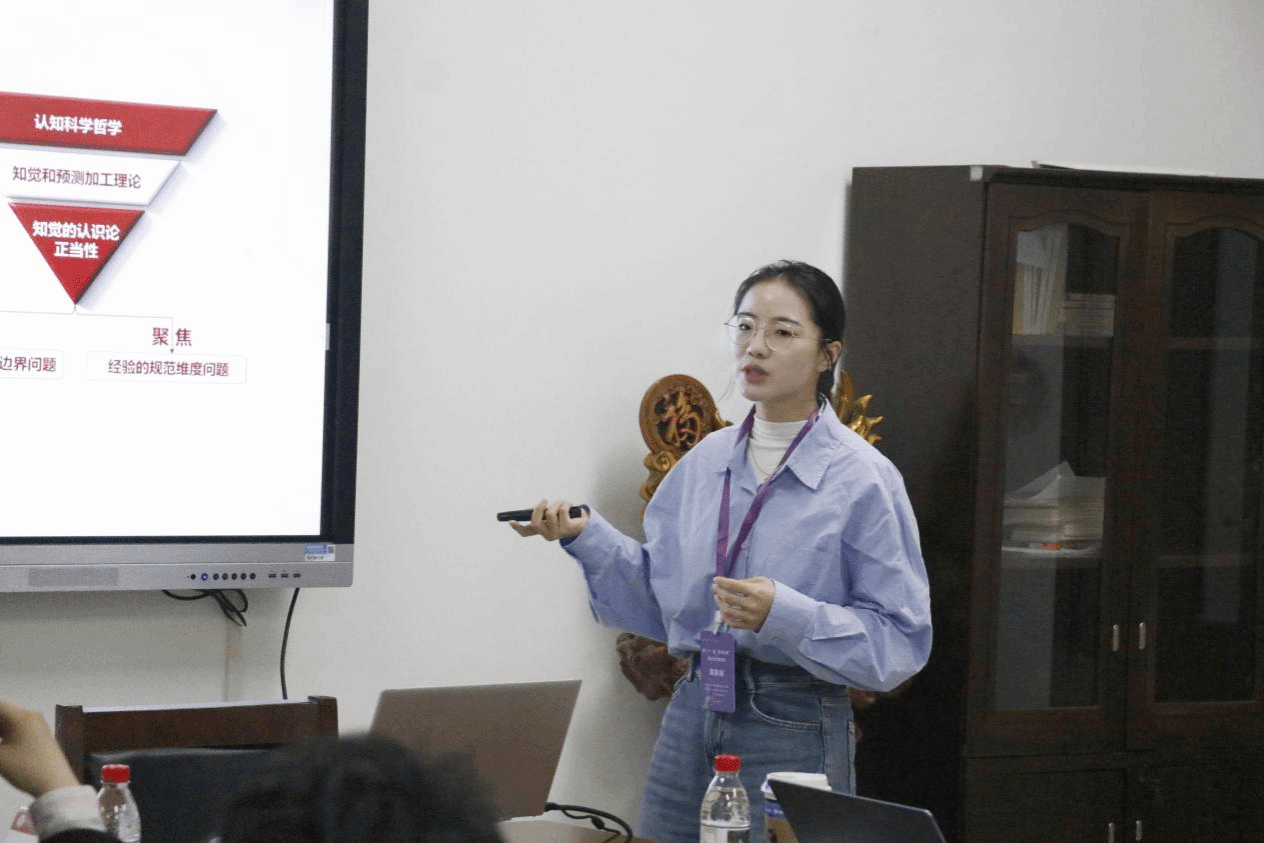 汇报内容涵盖“亚里士多德《物理学》时空概念”“意识透明性的理论困境”“牟宗三历史哲学建构”等议题。田海滨、魏宇两位专家从文本解读的准确性、研究逻辑的连贯性入手,助力参会者深化对外国哲学文本与问题的阐释,完善研究框架。