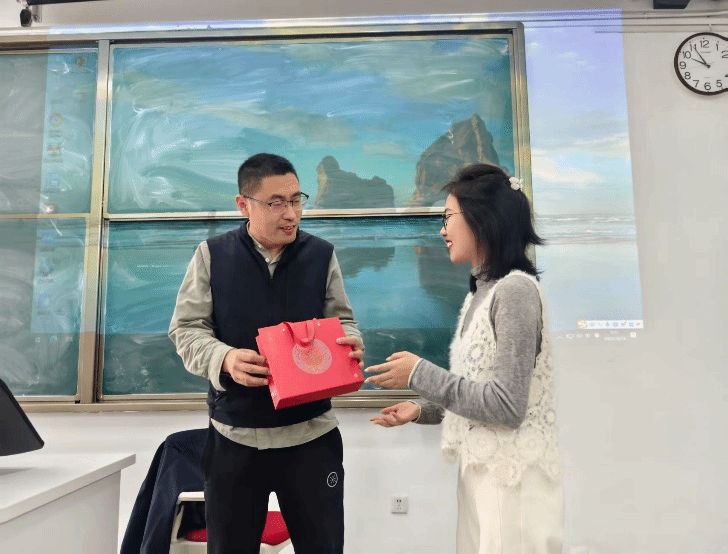 同时,同学们分别向三位老师送上了一份精心准备的礼物,以此表达对授课教师的崇高敬意与对北师大慷慨接纳的诚挚感谢。这一份份礼物,不仅是两校情谊的见证,更象征着学术火炬在一代代学人间的传递与尊重。