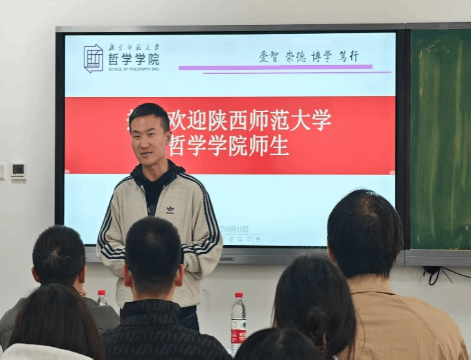 10月13日上午,金秋时节,陕西师范大学哲学学院研学团队踏入北京师范大学海淀校区,以“寻哲思、探文脉、促交流”为主题,开启沉浸式游学之旅。首日行程中,我们通过欢迎仪式搭建思想对话桥梁,“京师十景”的参访让哲学精神与校园景致深度交融,校史馆溯源则唤醒学术传承使命,三步递进间,两校哲学学科的共鸣与传承愈发清晰。