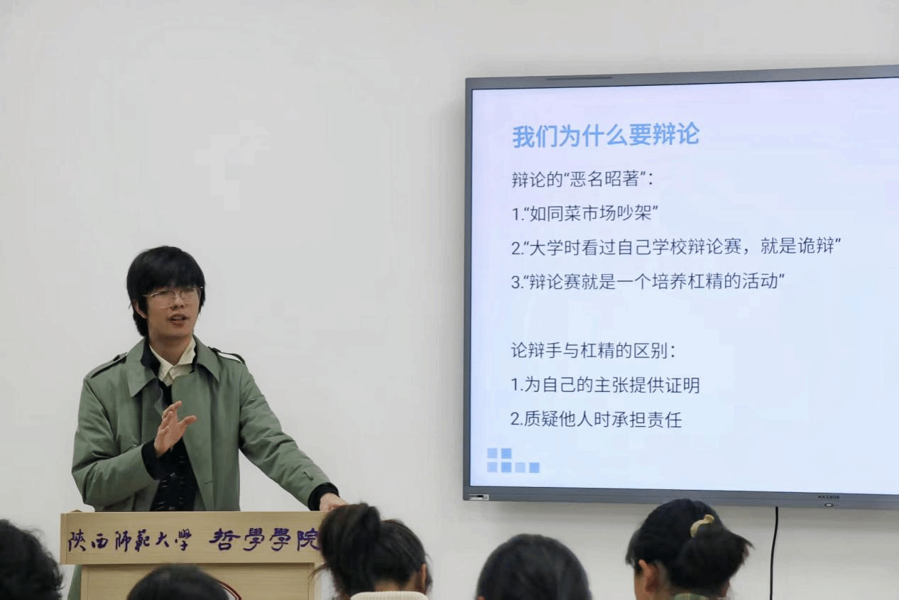 培训开始,张哲老师简要介绍了本次培训的基本流程和内容,希望全体参训人员珍惜学习机会,提前掌握辩论技巧、规避常见误区,培养团队协作精神与临场应变能力,将所学知识运用到实战中,在后续比赛中展现哲院学子的青春风采与思辨魅力。