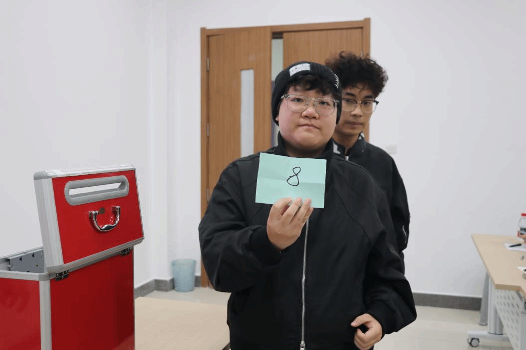 培训尾声,在全体参赛选手的共同见证下,学院学生会组织了本次辩论赛初赛对阵抽签。各参赛队伍代表依次上台,从密封的抽签箱中抽取编号,现场确定初赛阶段的对阵组合与出场顺序,为保证公平公正,学院团委老师全程监督抽签过程,并对抽签结果进行现场公示。