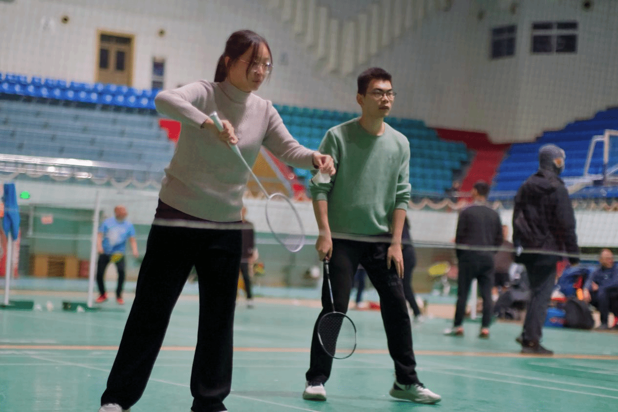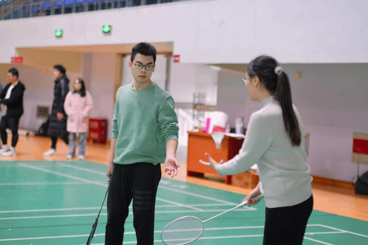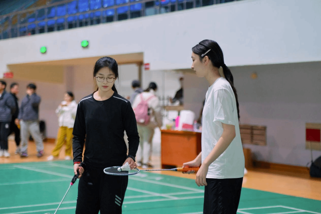 张云柯、汪璐尧同学在女双比赛中发挥出色,以流畅的轮转和精准的落点牢牢压制对手。两局比赛攻势如潮,分别以21:8、21:11的好成绩领先对手!