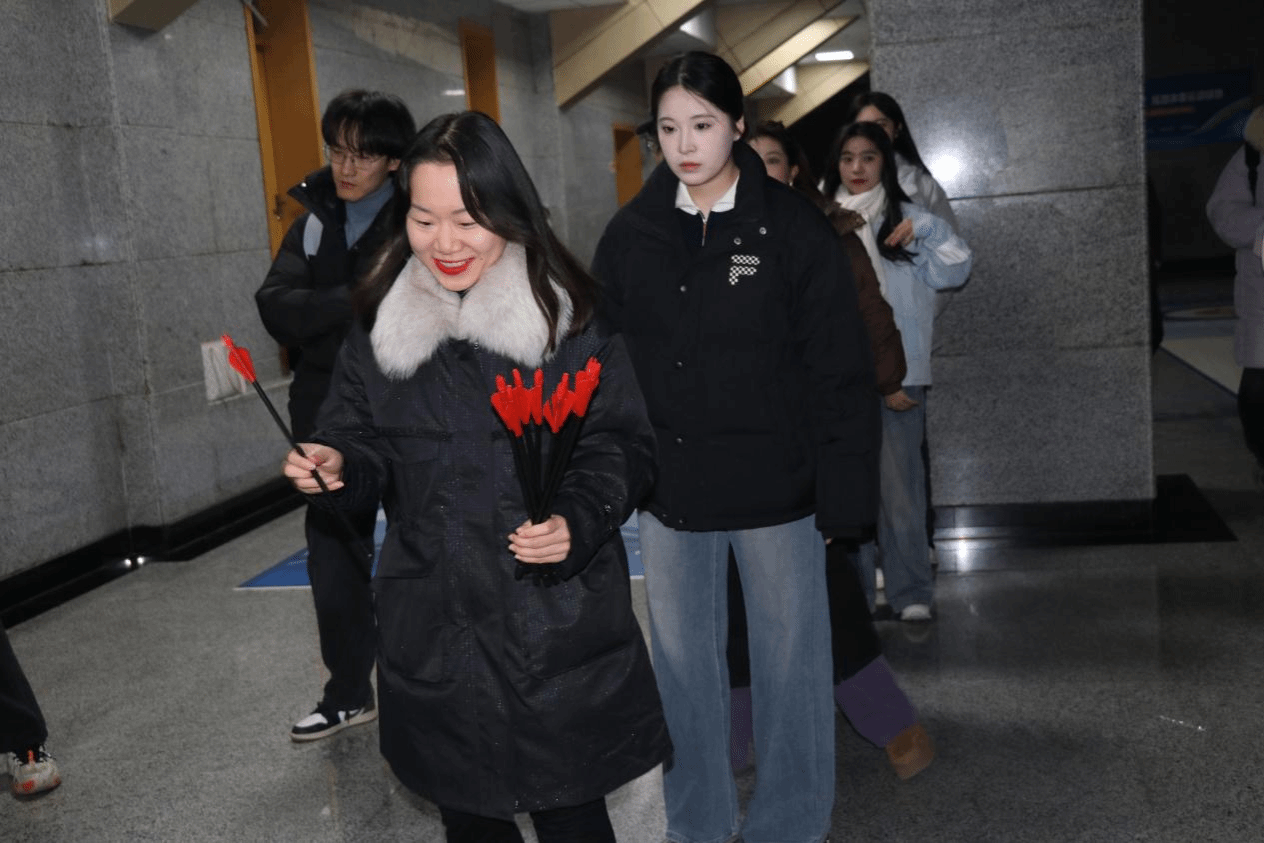 2025年12月2日晚,一场别开生面的研究生投壶比赛于长安校区上林体育馆火热进行!我院研究生张岳洋、张颖、刘欣、严文晴、王炀、刘文静、张娜娜、李佳怡八位同学纷纷化身“神投手”,以小组积分的方式在投壶竞技中赢获27分!展现了哲院学子斗志昂扬的精神面貌!