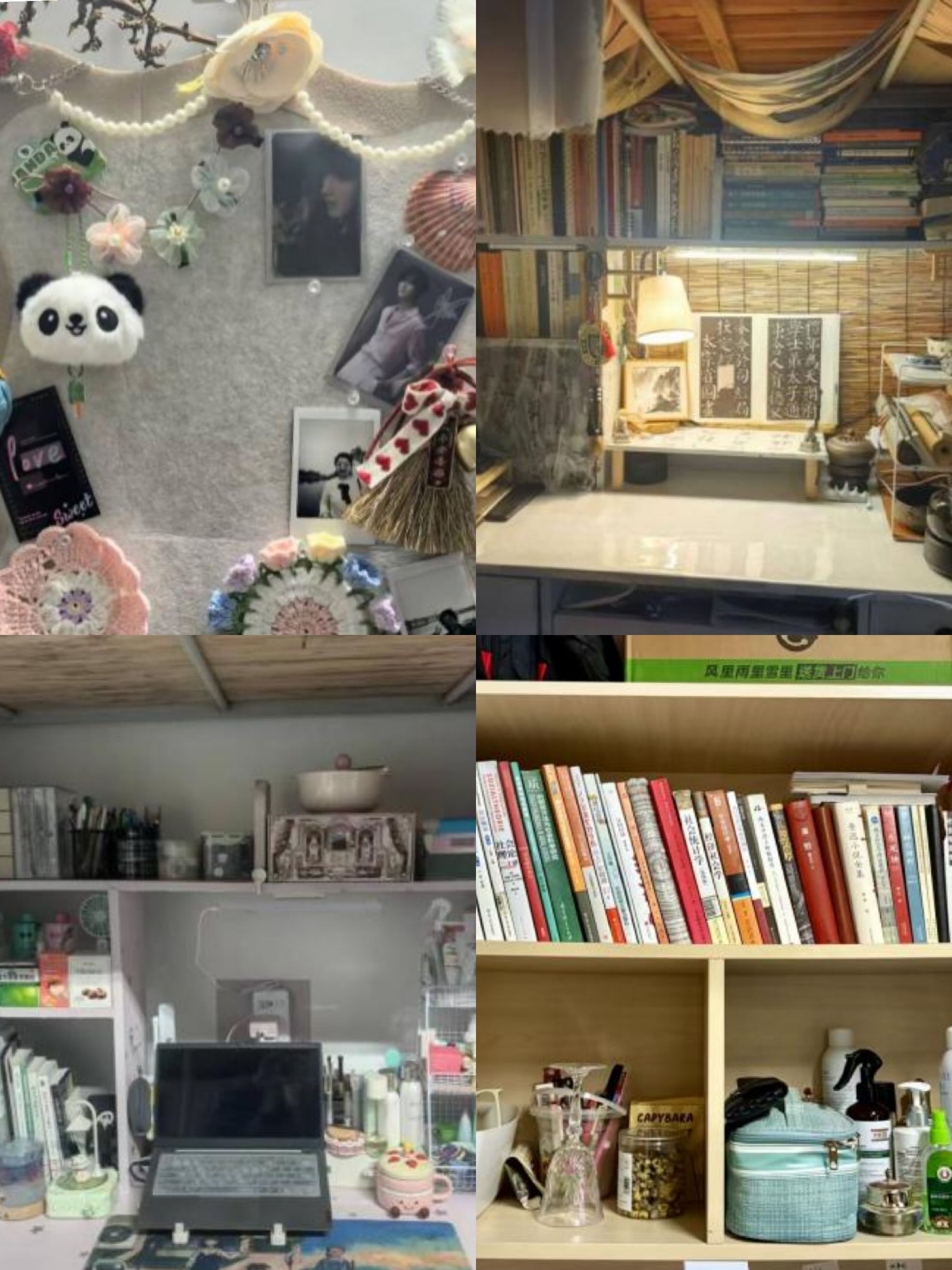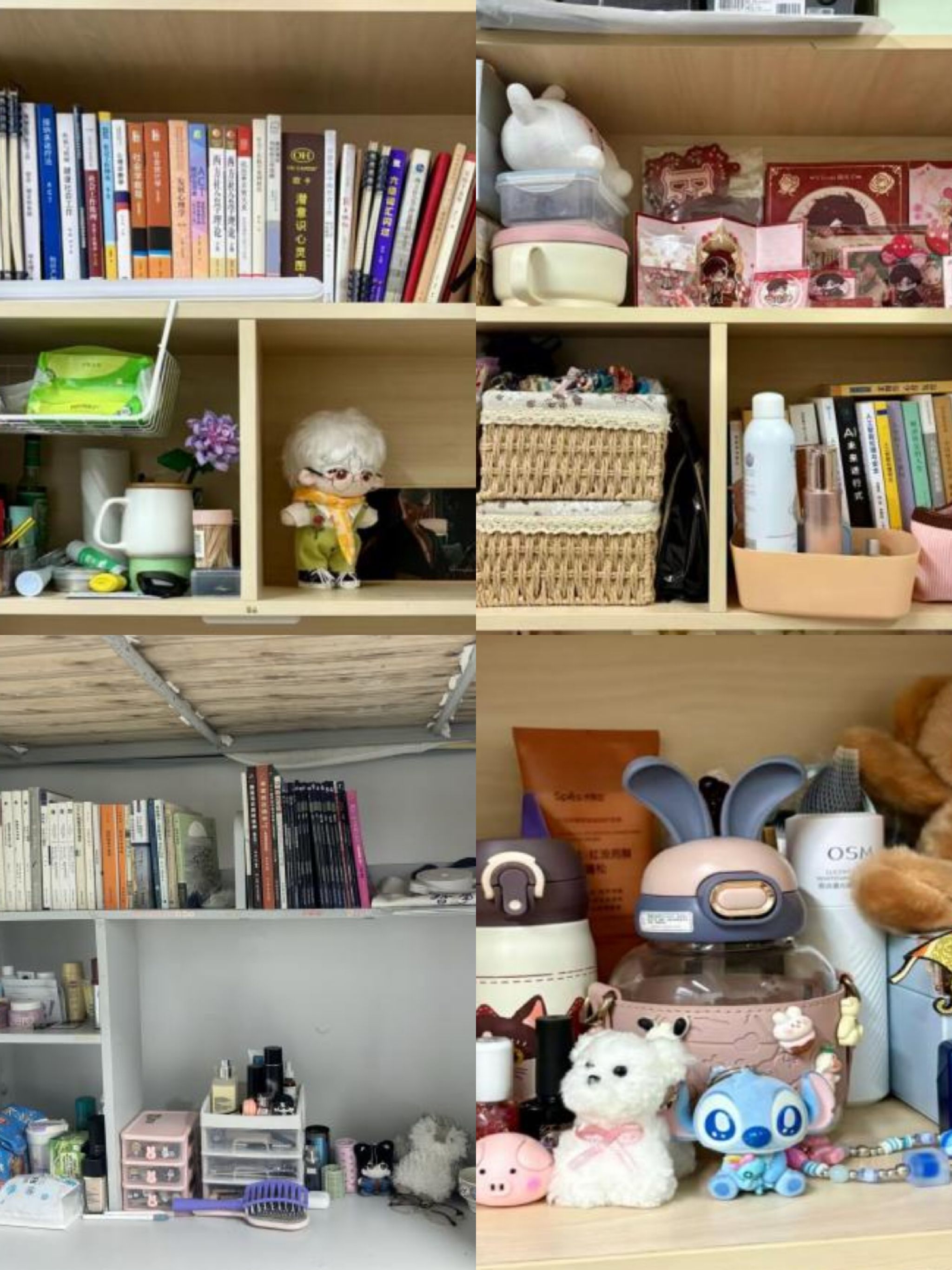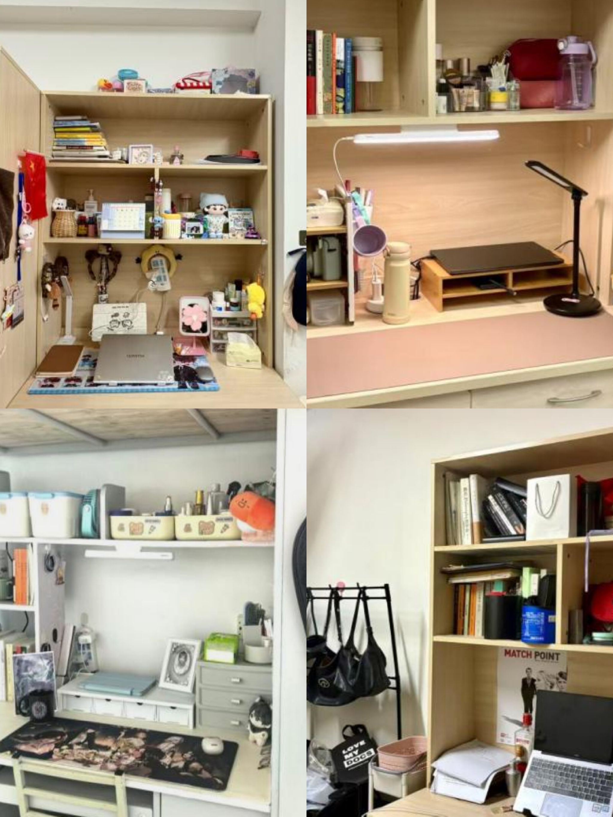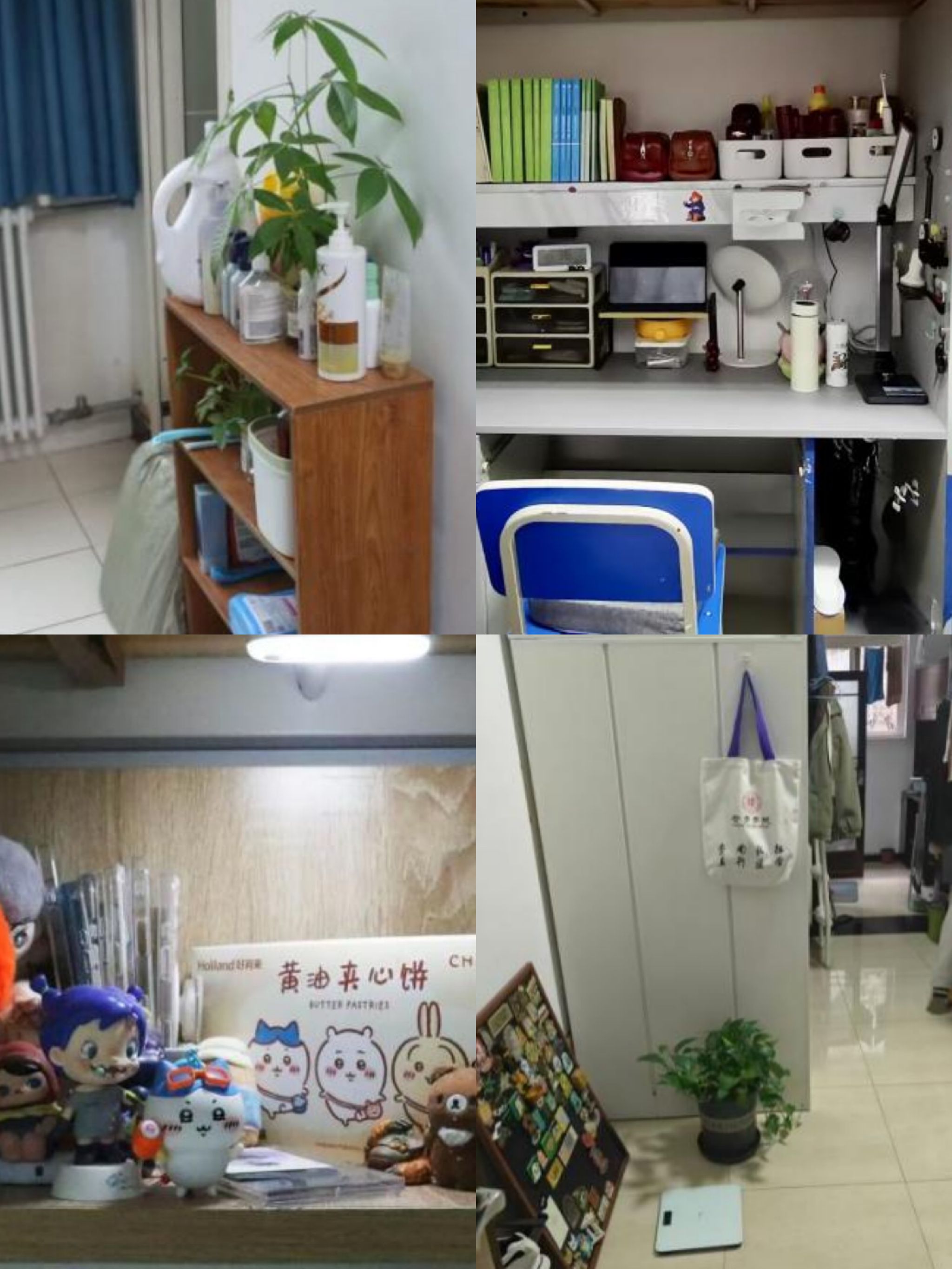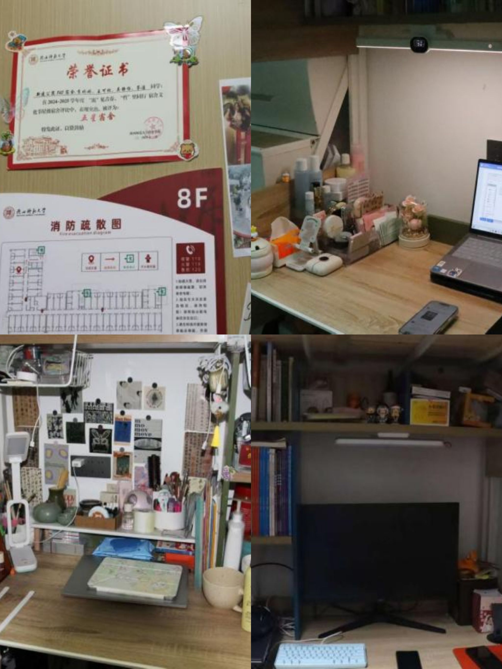 研究生宿舍则尽显多元风采,Ins风宿舍整洁明亮,简约装饰与高效收纳相得益彰,为科研之余提供了一方治愈天地;部分宿舍奉行简洁风,以开阔明亮、井井有条,展现着高效有序的生活内核;有些宿舍的精致感令人惊艳,干净的书柜、满载回忆的照片墙与灵动的手办相映成趣,既藏着对书籍的敬畏,也藏着未泯的童心;还有宿舍虽承载时光印记,却在学子们的打理下焕发新生,兼具生活气息与学术氛围。每一间宿舍都是一个独特的故事,每一种风格都是一段鲜活的青春。