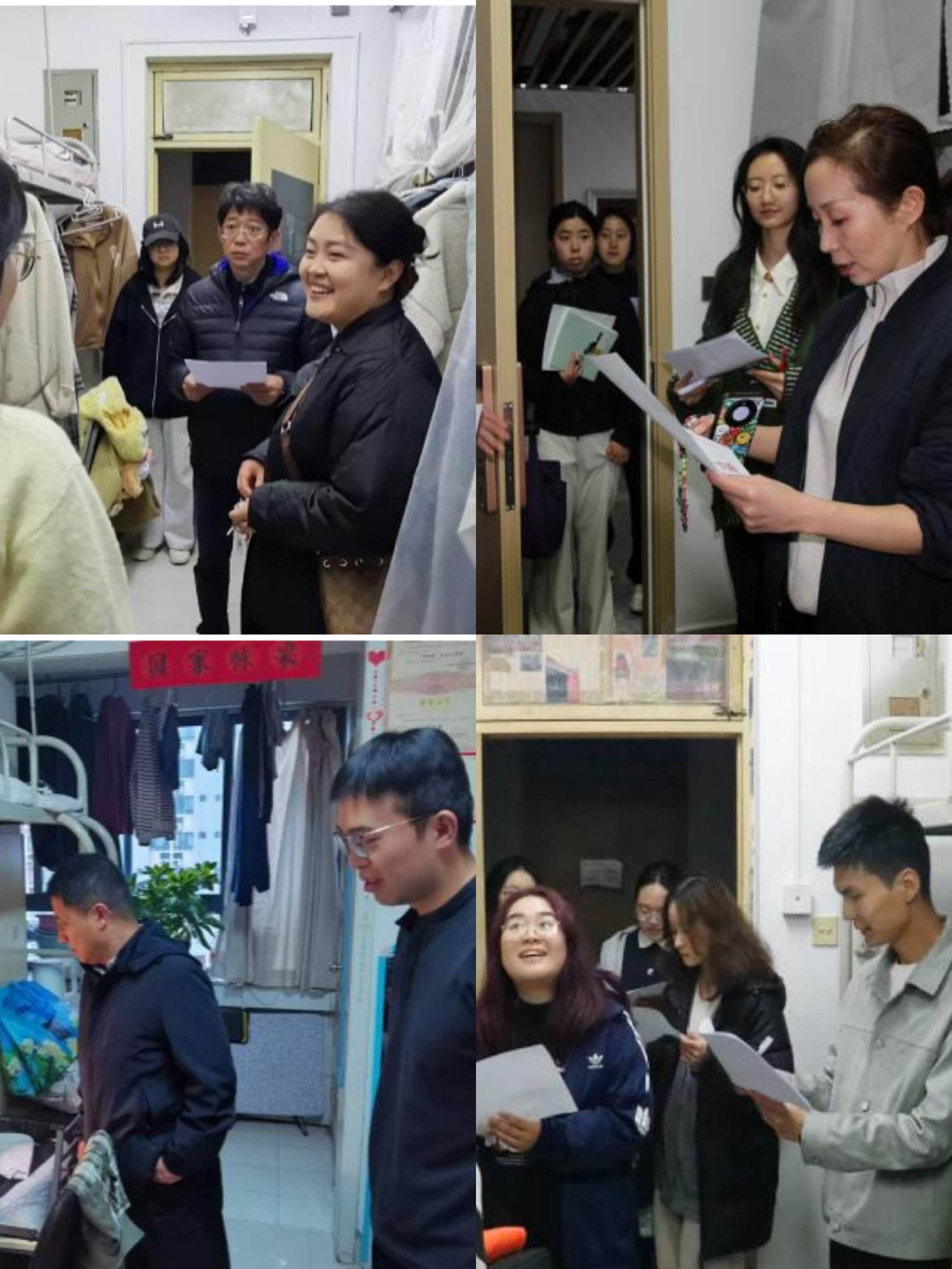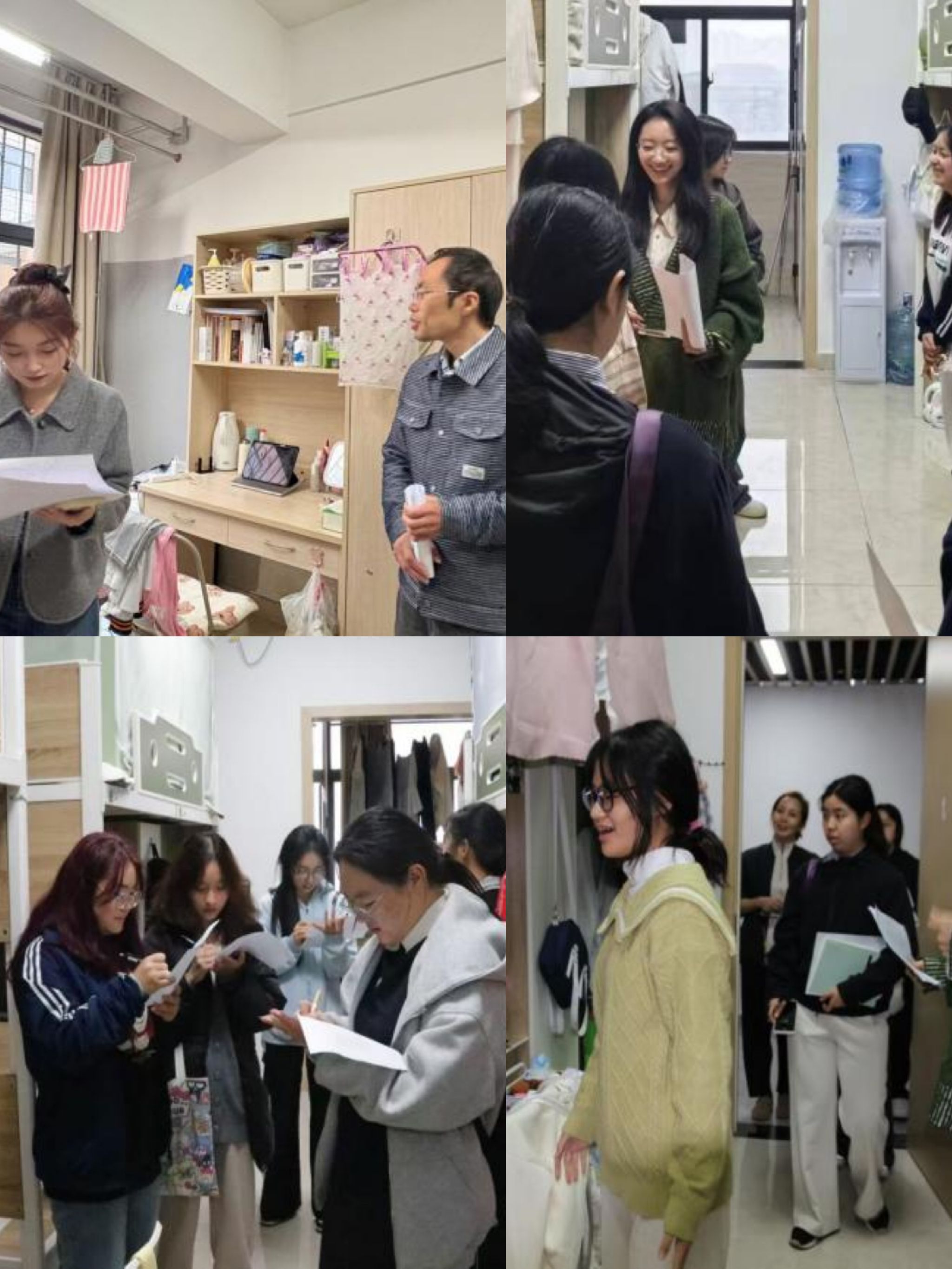 评审过程中,老师们不再是严肃的检查者,而是亲切的探访人。他们细致查看每一间宿舍的用电用水安全、卫生环境,叮嘱同学们秋冬季节注意通风保暖、预防疾病;更耐心倾听同学们的创意构想、生活趣事,在轻松的谈笑中给出中肯建议。从本科宿舍的青春活力到研究生宿舍的沉稳雅致,这场走访让检查变成了一次次温暖的互动,让学院的关怀渗透到每一个角落。