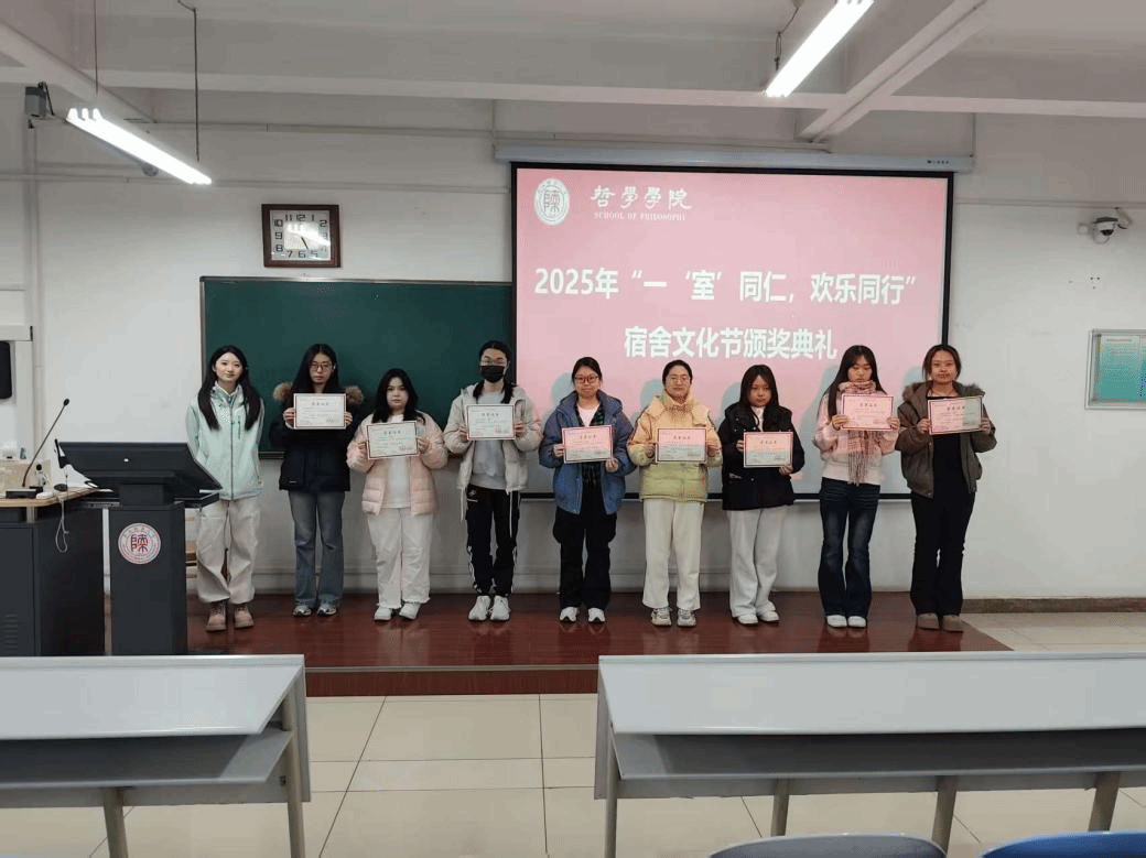 当创意点亮方寸天地,当温情凝聚青春力量,一场关于“家”的邂逅在哲学学院温情上演。为充分发挥宿舍在学生良好生活习惯养成、优良学风建设和校园文化培育中的核心阵地作用,营造“清爽整洁、安全文明、团结奋进”的宿舍生活氛围,深化“以舍风促学风,以小家筑大家”的育人理念,学院于2025年11月4日—2025年11月30日举办了以“一‘室’同仁,欢乐同行”为主题的宿舍文化节活动。本次活动通过师生携手的评审走访、创意十足的空间布置、温暖走心的集体共建,让每一间宿舍都成为青春的注脚,每一份付出都凝聚成长的力量,最终以圆满的成效为这场校园文化盛事画上句号。
