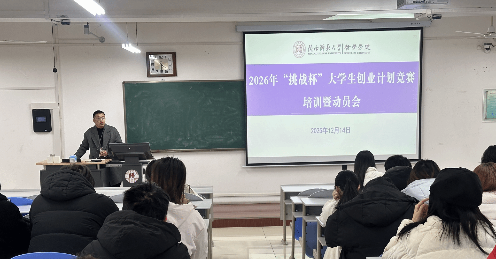 为充分激发学院青年学生创新意识和科研潜能,推动学生课外学术科技活动高质量发展,12月14日下午,学院邀请校团委干事、2025级社会学班兼职班主任方桂阳老师开展2026年“挑战杯”竞赛专题培训暨动员会,学院全体本科生参加会议,活动由本科生辅导员吴承恒主持。