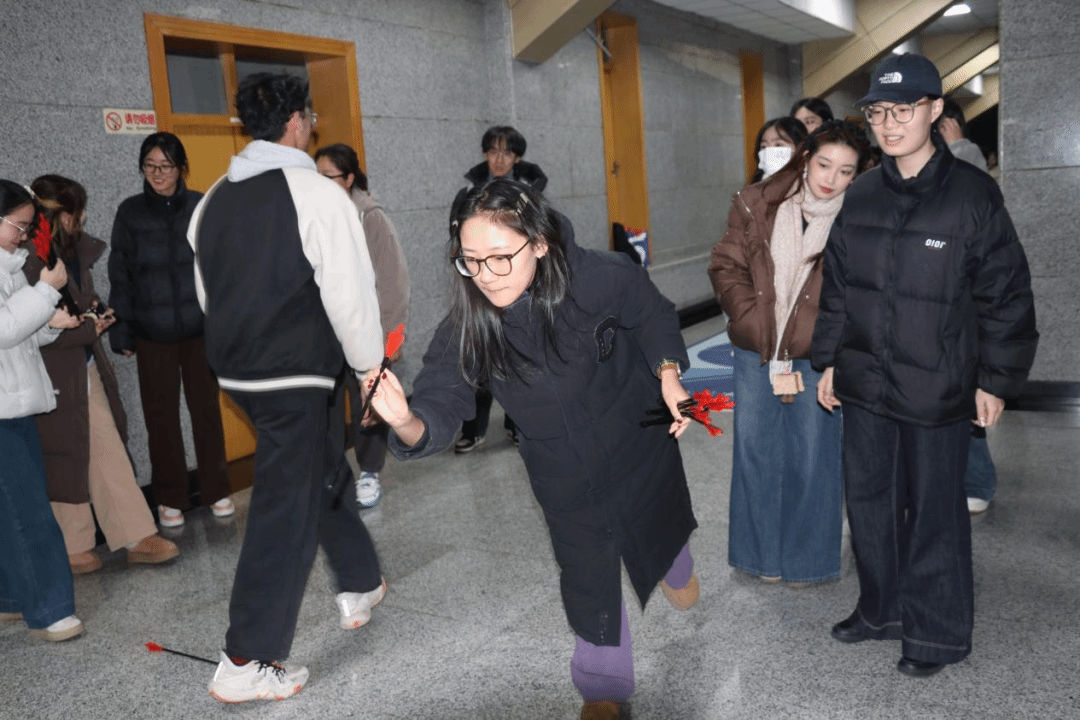 投壶比赛中同学们沉着冷静、精准投射,最终赢得高分
