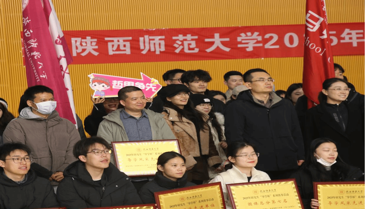 赛场挥汗显锋芒,导学同心谱华章。近期,我校2025年研究生“导学杯”系列赛事圆满收官,哲学学院师生凭借昂扬的斗志、默契的协作在多个赛场奋勇争先,交出了一份亮眼的答卷。12月12日上午,系列赛事颁奖仪式在长安校区新体育馆隆重举行,学院研究生导师代表雒少锋老师、辅导员张凡老师与学生代表共同出席,见证了“导学风采先进单位”荣誉的揭晓,为本次“导学杯”之旅画上圆满句号。