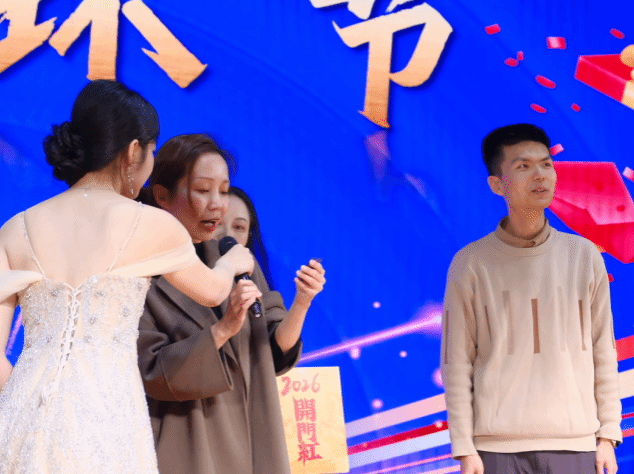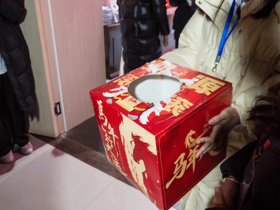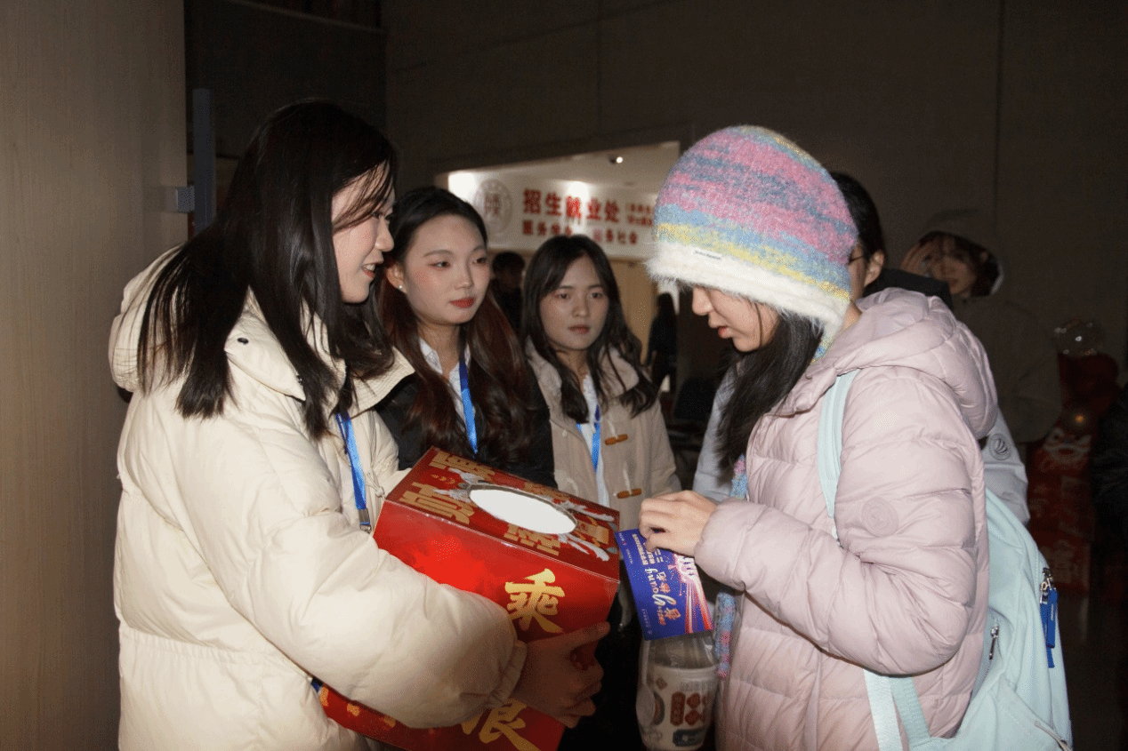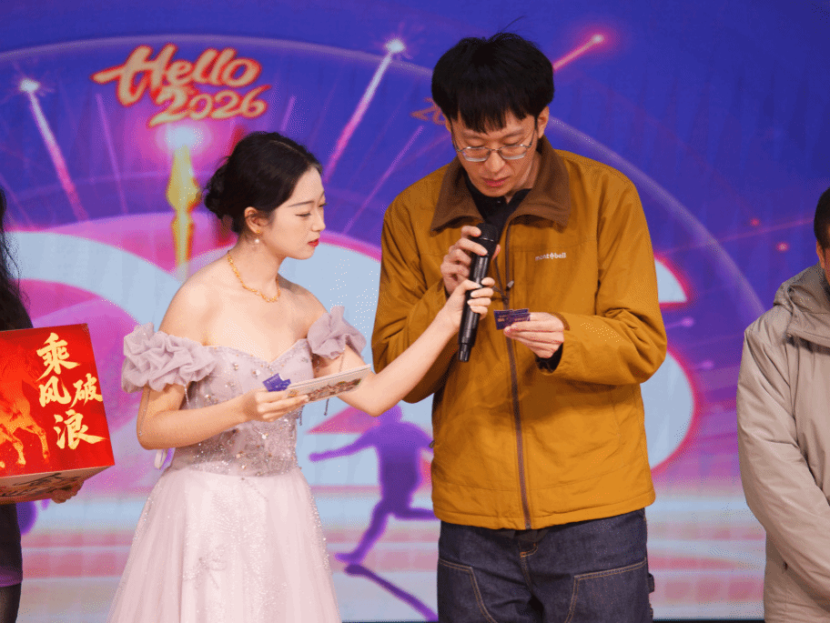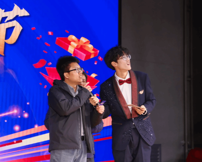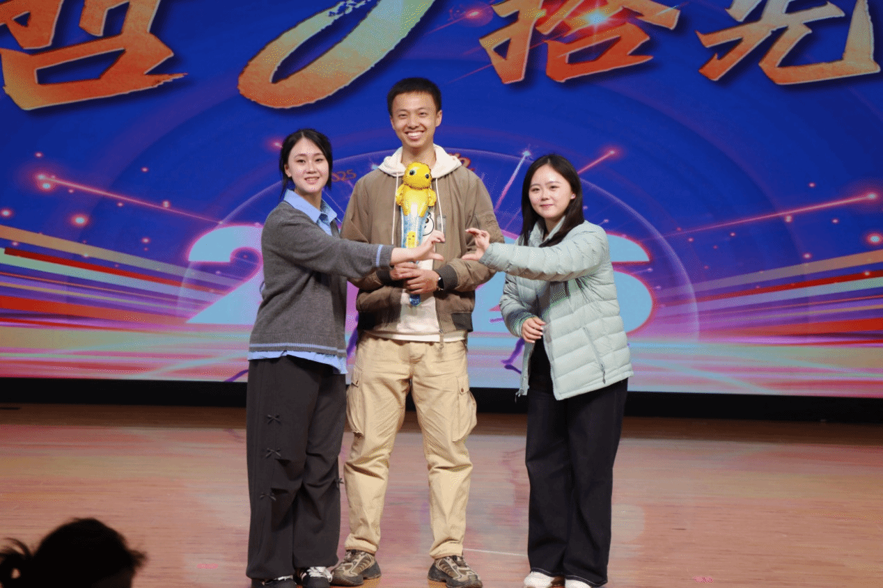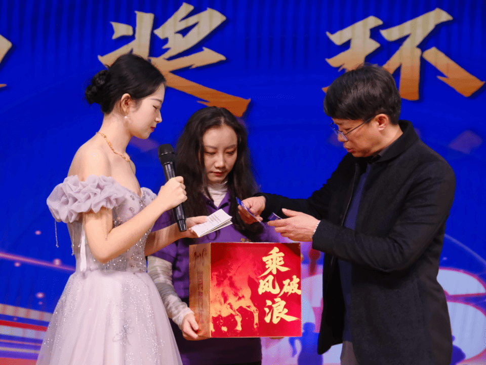 颁奖落幕,幸运持续加码!第二轮抽奖环节中,关海强、冯燕、陈航英三位老师从抽奖箱中抽出5名二等奖幸运儿,公布号码的瞬间,现场欢呼声、掌声此起彼伏,将晚会氛围推向又一个高潮。工作人员为中奖同学送上精美奖品,这份新年的幸运让暖意弥漫全场。