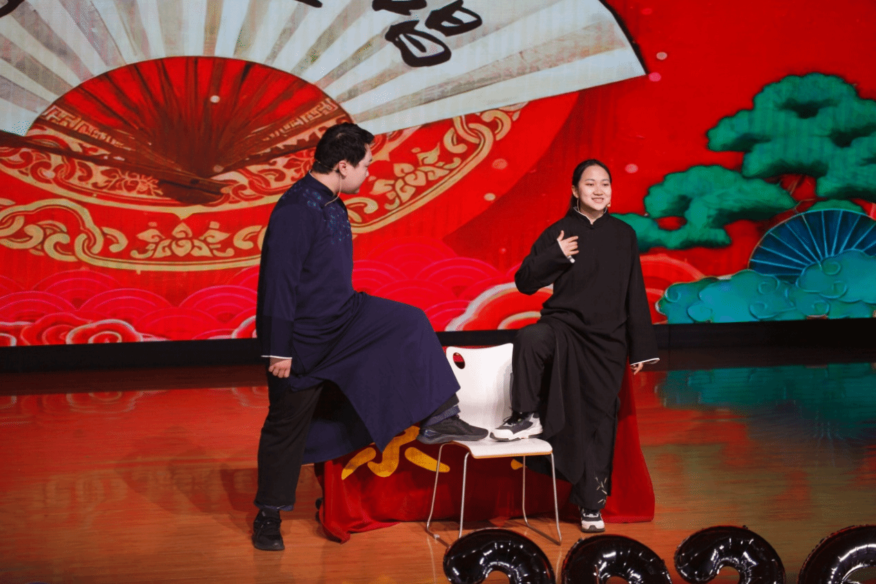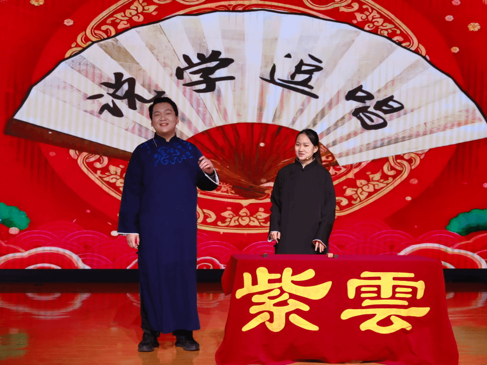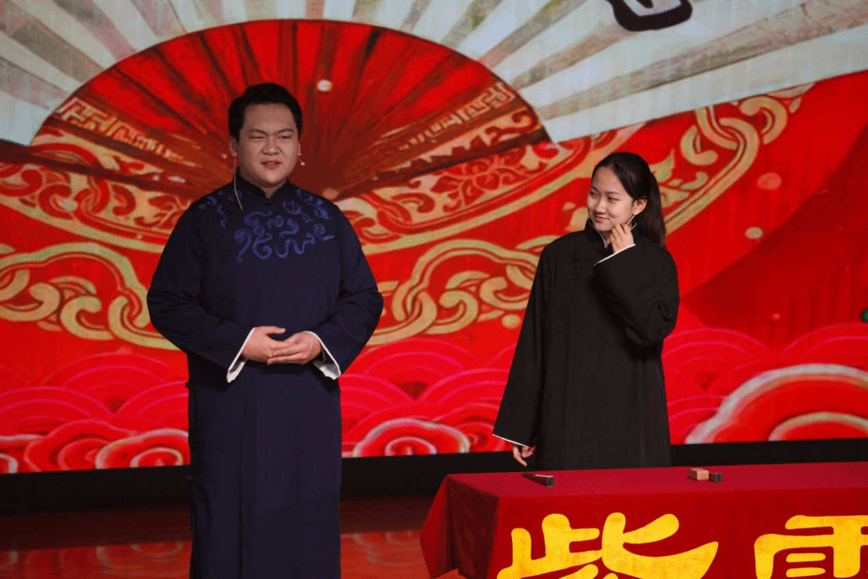 紫云相声社带来的惊喜之作 —— 国家安全学院2023级本科生张艺凡与马克思主义学院2023级本科生徐周驰恒合说的相声《智取威虎山》,让红色经典碰撞诙谐艺术。二人妙语连珠、默契十足,以幽默风趣的演绎唤醒经典记忆,点燃了现场热烈氛围。