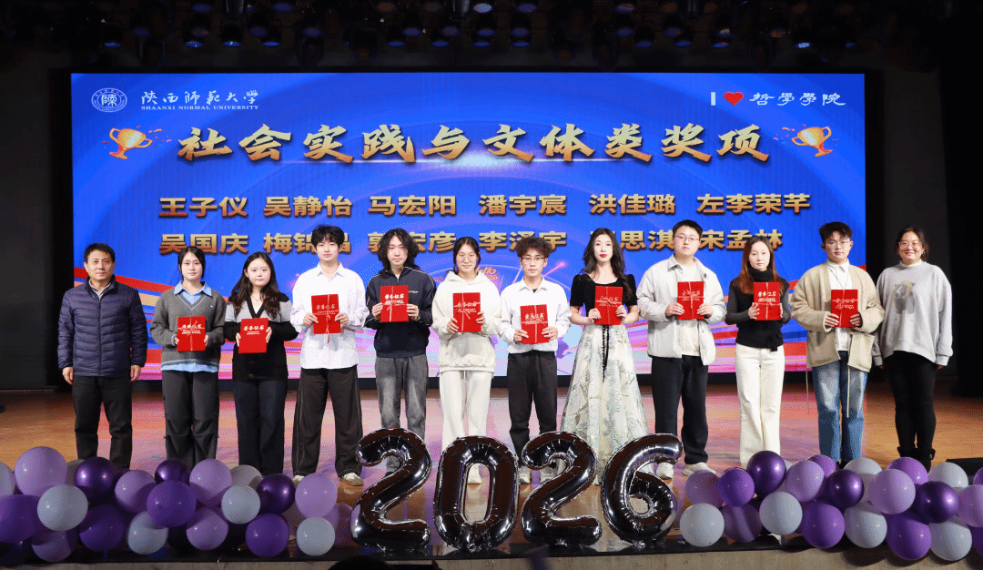 第二轮颁奖环节紧随其后,学院关海强、冯燕两位老师为在“青春祖国行”“新发展理念在陕西”“田野中国”等社会实践活动,以及校院各类文体赛事中表现亮眼的王子仪、吴静怡、马宏阳等12位同学颁发奖项,表彰他们在实践中锤炼自我、在活动中绽放光彩的积极态度与优异表现。