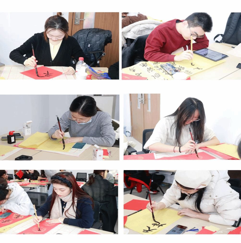 有人笔力沉稳,书写着对来年宏愿的庄重寄托;有人心思灵巧,在方寸笺纸上留下隽永的哲思短语。初学者们亦大胆尝试,感受笔墨与纸张相触的微妙趣味。