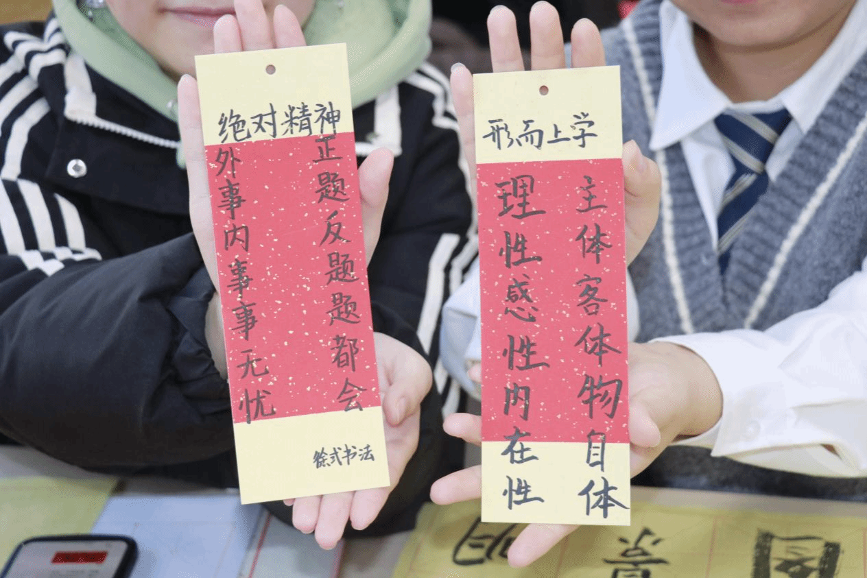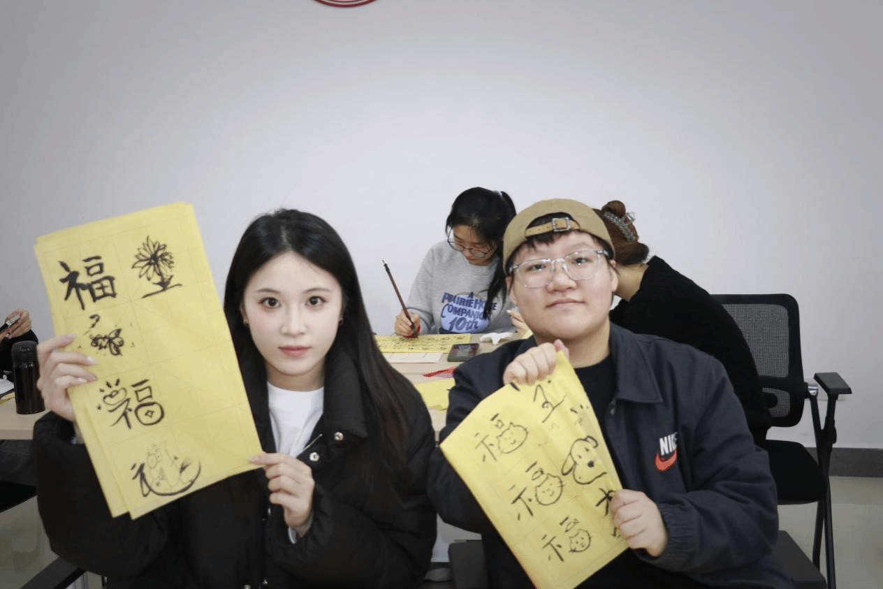 完成作品后,师生们互相观摩、品评,笑语盎然。活动最动人的一幕,莫过于同学们将这份亲手创造的、带着温度的心意——无论是工整的对联、雅致的书签,还是那个或许不够完美却无比真诚的“福”字——恭敬地赠予学院的老师们。一份份质朴的礼物,承载着深厚的感激与祝福,让文雅的墨香更添了一抹温暖的人情味。