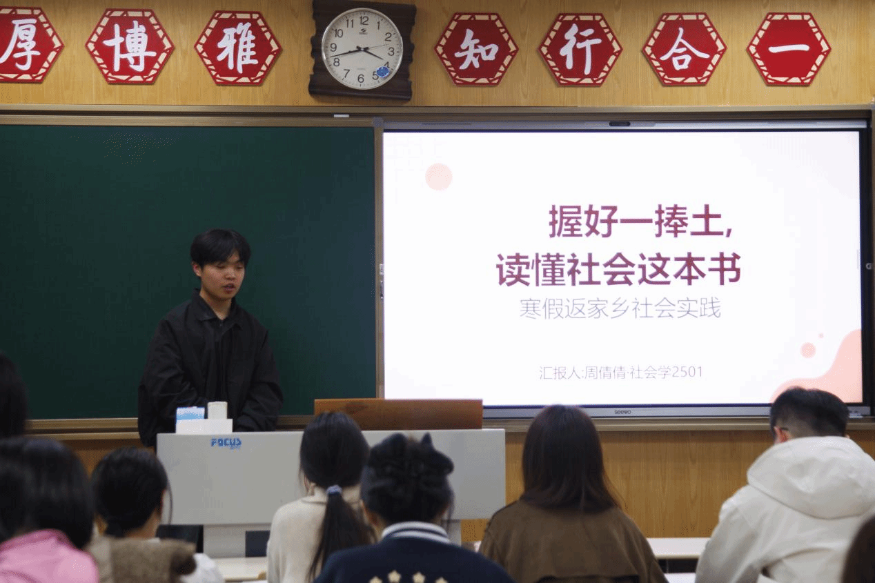 分享过程中,同学们结合自身实践,畅谈了收获与困惑、成长与蜕变。他们纷纷表示,社会实践不仅是一次走出校园、了解社会的宝贵机会,更是一次锤炼品格、提升能力的成长历练。通过实践,不仅将课堂上学到的理论知识转化为服务社会的实际行动,更深刻体会到作为新时代大学生的责任与使命,学会了用理性思维观察社会、用温暖行动传递力量,实现了“受教育、长才干、作贡献”的实践目标。