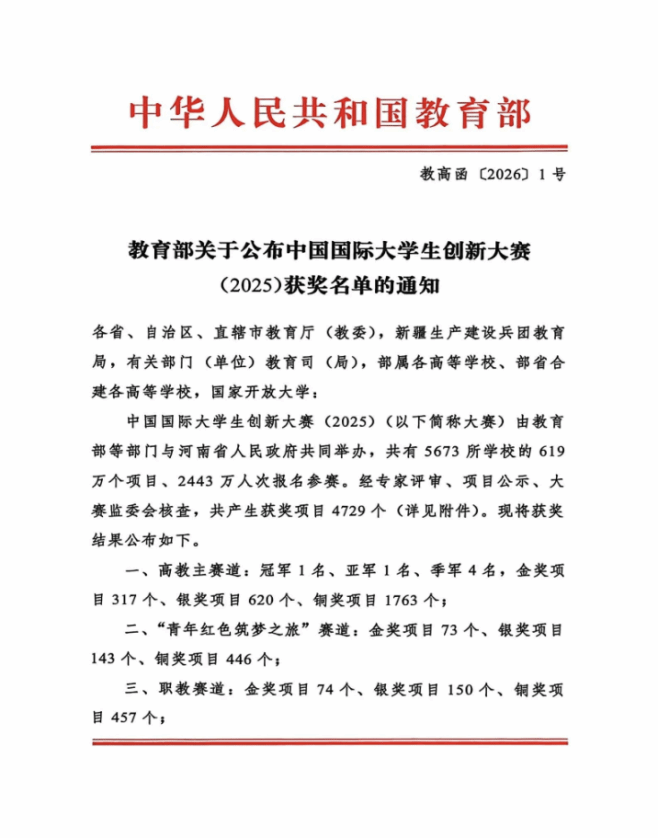 中国国际大学生创新大赛是国内覆盖范围广泛、参与人数多、影响力大的大学生创新创业赛事,旨在以赛促学、以赛促创、以赛促用。本届大赛聚焦创新驱动与文化强国建设,为全国高校学子搭建了高水平展示与交流平台。