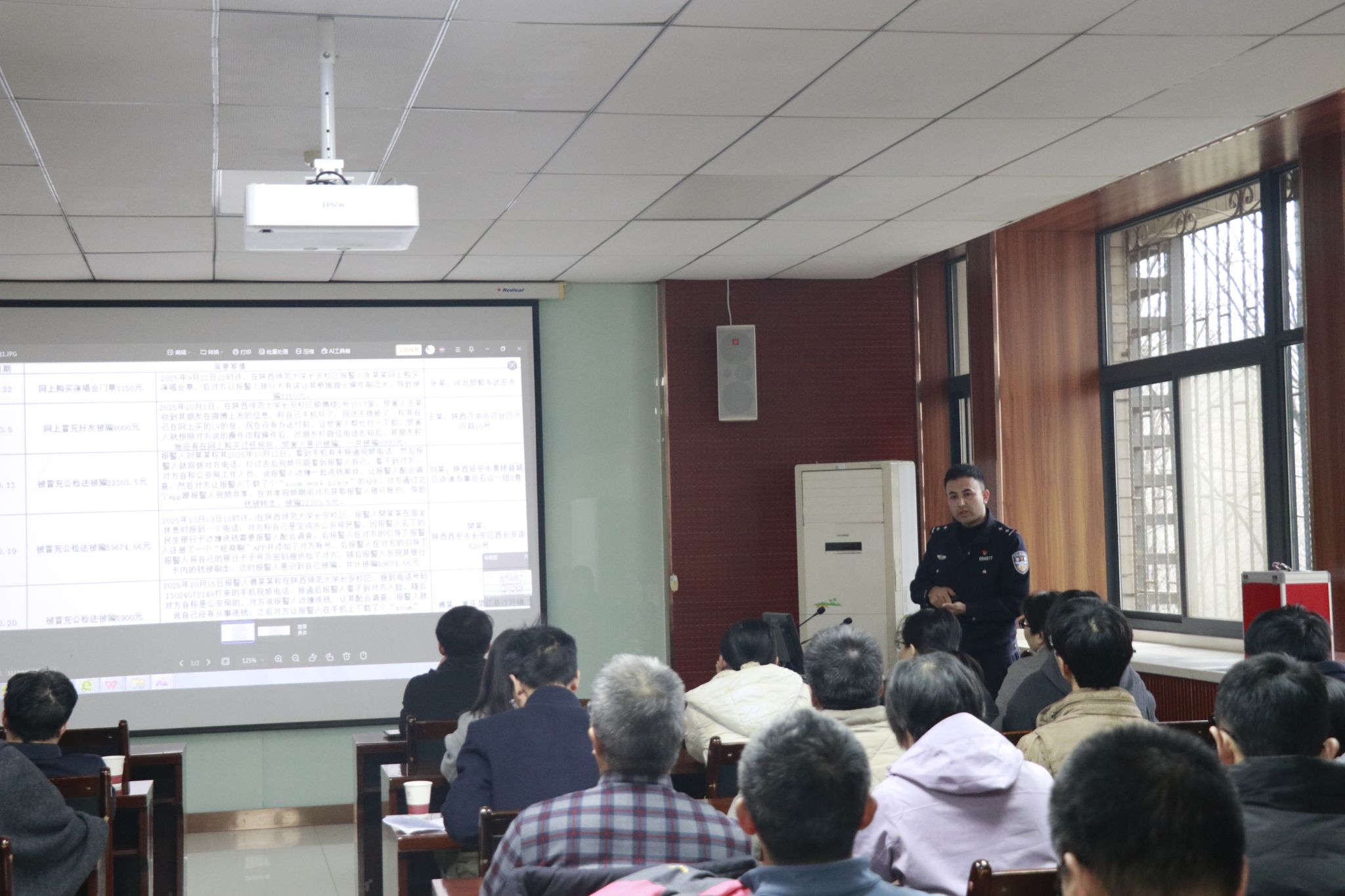 会前,郭杜派出所社区警务队警长沙吾克提应邀向全体教职工及学生代表开展了一场以防诈反诈、反扒为主题的校园安全专题讲座。此外,还开展了处级领导干部及领导班子工作报告与民主测评。