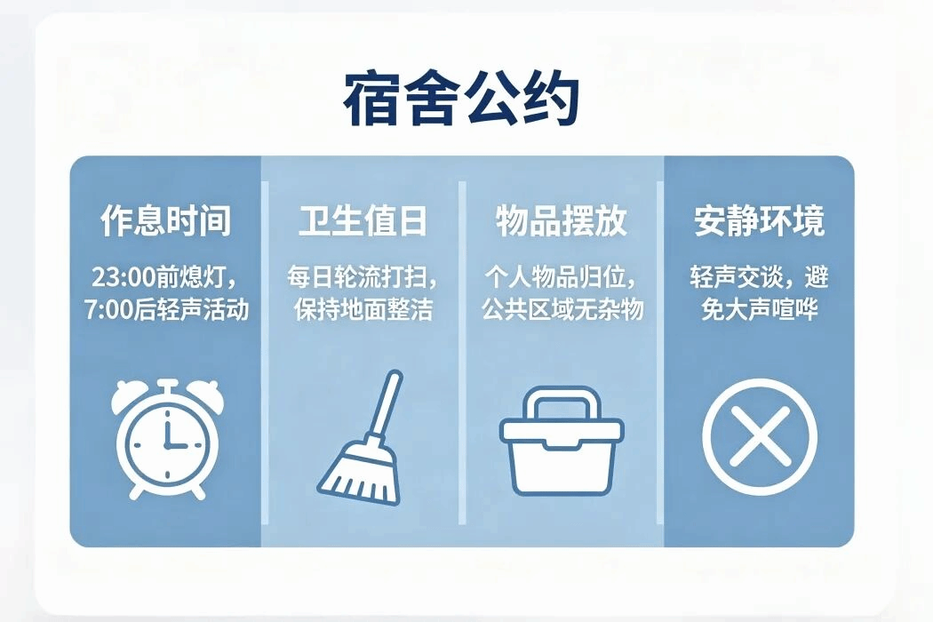 宿舍是大学生学习生活、成长成才的重要空间,是学风建设与思想政治教育的重要阵地。希望我院全体学生高度重视,积极参与本次宿舍文化节,主动清理内务卫生、排查安全隐患、规范日常行为、打造特色宿舍文化,共同营造优良舍风、班风、学风,共建安全、文明、温馨、和谐的宿舍家园。