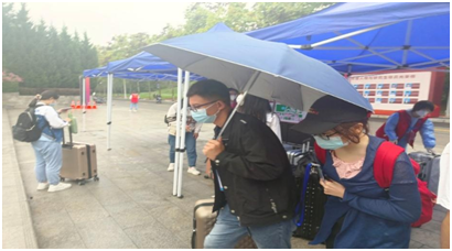 沉重的行李并未阻碍同学们踏入师大校园的脚步,学长学姐以及志愿者们早已为萌新们扫清了前行的障碍,确认过眼神,是师大的人。