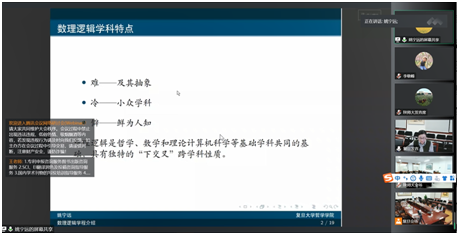 姚宁远老师带来了题为“数理逻辑跨学科学程建设”的报告,全面展示了数理逻辑跨学科学程建设经验。姚老师指出,数理逻辑学科具有“难、冷、僻”的特点,因此跨学科学程建设有一定困难,例如专业教师数量少、分布稀疏;专业教师数量少、分布稀疏;学习时间精力投入多等。随后,姚老师结合复旦大学2+X本科教学培养方案对问题提出了解决方案,探索实施数理逻辑学程跨学科培养方案。他指出,数理逻辑跨学科学程主要内容包括:整合已有跨学科资源,设计的学程课程;每年举办数理逻辑暑期学校;举行的研究导向型迷你课程;以前沿研究的宣传、普及为导向的“逻辑周”活动;学生主导的研讨班等。