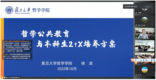 复旦大学哲学学院副教授、院长助理徐波老师展开题为“哲学公共教育与本科生2+X培养方案”的报告,为我们介绍了复旦大学哲学的公共教育和2+X的培养方案的融合。徐老师指出,复旦大学2+X培养方案中的“2”指专业培养课程与通识教育课程,“X”包括专业进阶、专业研讨、荣誉课程等多种培养方案。复旦大学通过三阶课程体系与“2+X”培养体系为学生提供多元的发展路径,让每一位学生能够找到适合自己的培养路径。同时鼓励同学们参加国内外学术交流活动。他强调,2+X培养方案注重全过程综合能力提升,培养学生学习能力、科研能力、写作能力、语言能力和交流能力。