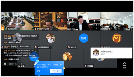 会议最后,复旦大学哲学学院党委书记袁新老师进行了总结发言。袁老师高度赞许哲学教育相关会议的开展,并且展望未来哲学教育的发展。在闭幕式环节,石碧球老师、徐波老师以及赵卫国等老师对本次的会议发表感想,表示期待更多线下的交流讨论,进一步深化了并拓展了本次专题研讨会的内容,带给大家极大的启发。陕西师范大学诸位与会老师们再次感谢复旦哲学学院每位嘉宾们的精彩分享,师生们也在云端讨论区纷纷致谢,本次专题研讨会圆满结束。
