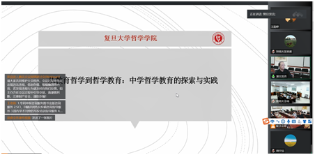 复旦大学哲学学院副院长林晖教授的报告题目是“中学哲学教育的探索与推广”。林老师在报告中介绍了复旦大学哲学学院“长宁区复旦大学中学哲学教育基地”、兴趣类哲学社团、中学生哲学暑期课堂等形式的实践探索工作。同时对教育哲学研究中心的国际交流、中小学调研等相关工作进行了介绍与展示。