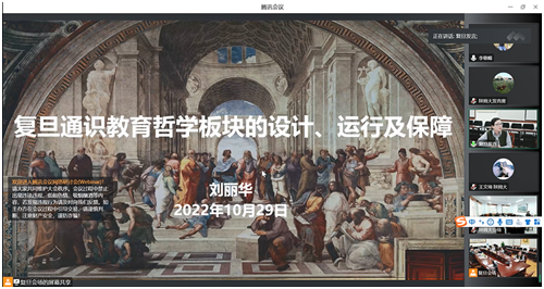 复旦大学通识教育中心办公室主任刘丽华老师从从通识课程的教学、管理、建设的角度展示了复旦大学哲学通识教育的特色,刘老师的报告题目为“复旦通识教育哲学板块的设计、运行及保障”。刘老师指出,复旦通识教育建设分为三大层次,分别为价值层次、视野层次和能力层次,哲学教育在复旦通识教育中发挥重要作用,接着,刘老师展示了哲学通识课程建设措施,包括:严格新课选入、推动大纲改革、建立教师共同体、开展小班研讨、加强通识写作训练、注重学生反反馈等六个方面。同时,刘老师展示了复旦通识游学课程相关经验,希望将第一课堂教学很好的延展到第二课堂中来,并且很好地反馈给第一课堂。