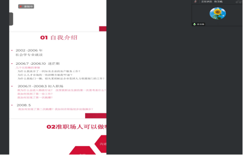 接着,陈玉娥学姐根据自己多年来的职场经验,以一个“职场人”的身份,向我们传授经验。陈玉娥学姐简单做了自我介绍,向我们介绍了自己大学以及步入职场、开始工作之后的经历。