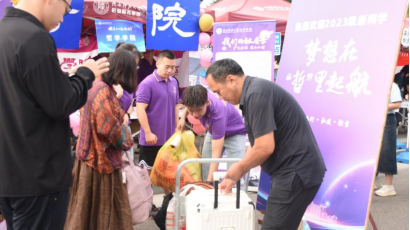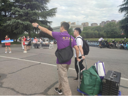9月6日清晨,迎着兴起的朝阳,哲学学院辅导员张凡老师和志愿者们为新生们准备了丰富温馨的迎新活动。哲学学院的志愿者们,身着紫色院服,十分耐心地配合迎新工作。他们为新生们搬运行李,将沉甸甸的行李放置得井井有条,不论行李沉重或珍贵,都以十八般武艺确保安全完好。志愿者们也担任导游角色,带领新生熟悉校园,介绍图书馆、教学楼、食堂等重要场所。在阳光轻风中,他们勤奋而一丝不苟,为校园增添了最灿烂的色彩。