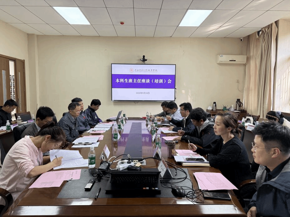 李晔围绕《陕西师范大学班主任聘任和管理实施办法》,重点解读了班主任的选聘条件、工作职责、考核激励与保障机制等内容,强调各位班主任要准确把握岗位要求,切实将各项工作落到实处,推动学院人才培养工作取得新成效。全体与会师生认真学习了学校文件,交流了学习体会。