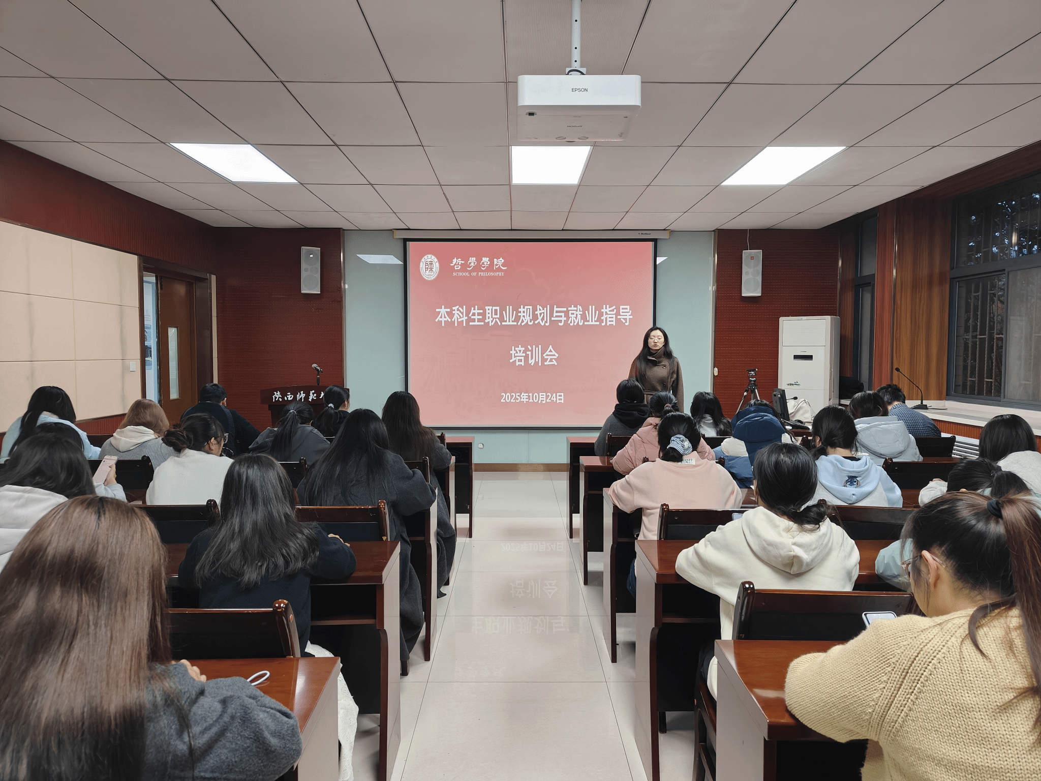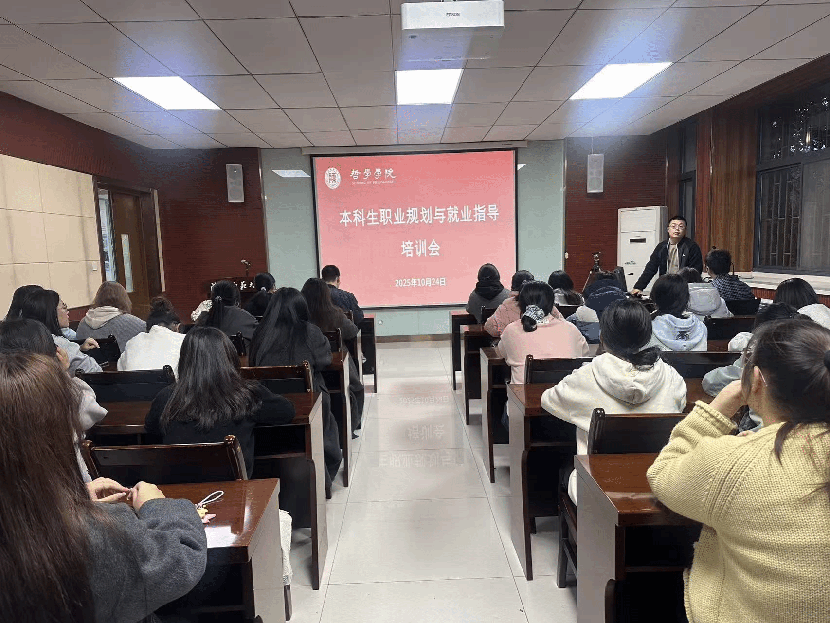 为帮助学院本科生明确职业发展方向,提升升学与就业规划的科学性和针对性,2025年10月26日下午,哲学学院在学院二层报告厅举办本科生职业规划与就业指导培训会。本次培训会由学院2022、2025级本科生专职辅导员吴承恒担任主讲,2023、2024级全体本科生参加此次活动。本次活动由2023、2024级本科生兼职辅导员丁灵儿主持。