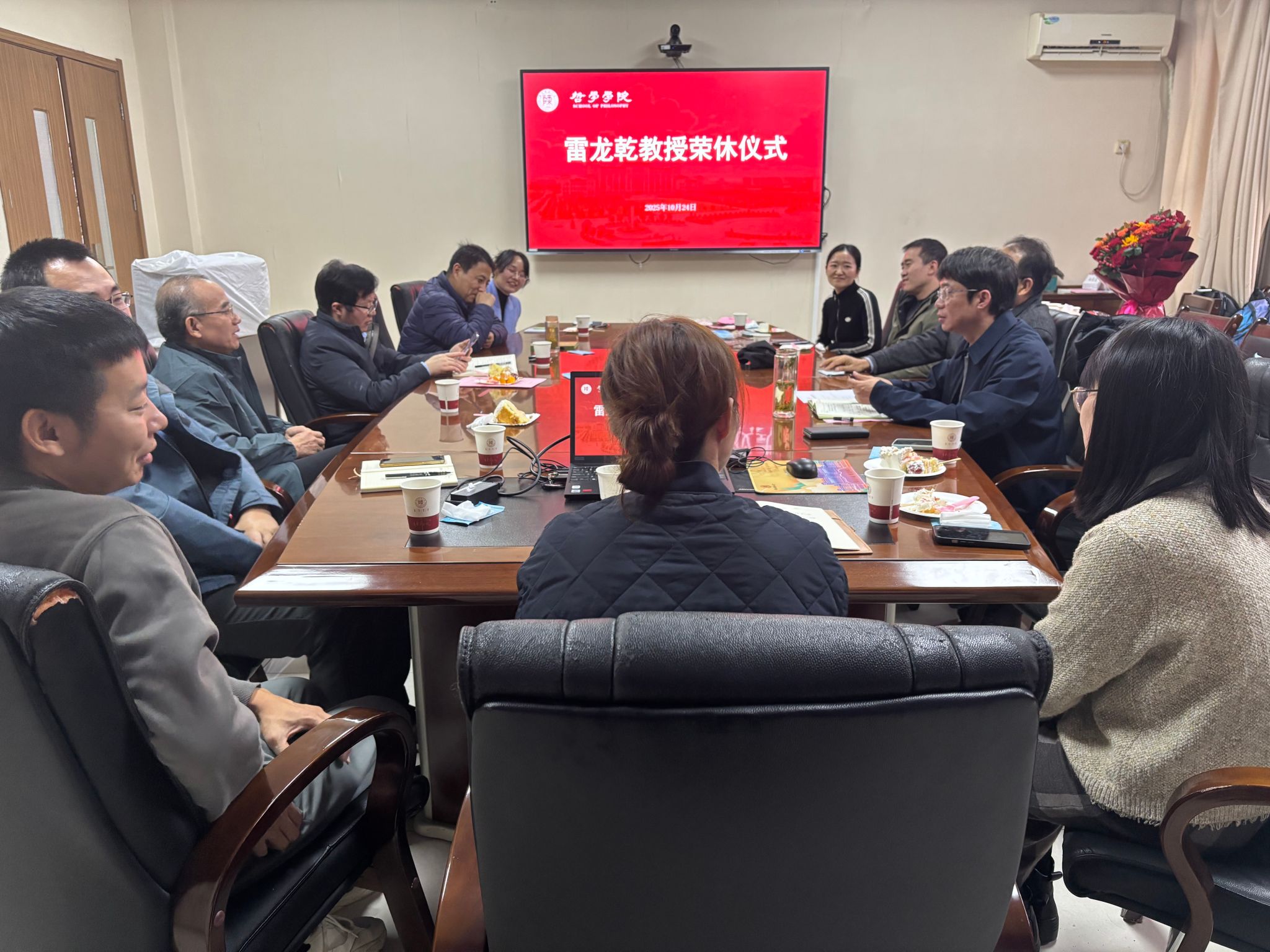 10月24日下午3时,学院会议室内暖意融融,学院为深耕教育事业四十载的雷龙乾教授举行荣休仪式。学院领导班子成员、哲学系及相关教研室教师代表齐聚一堂,共同见证这一温情时刻。