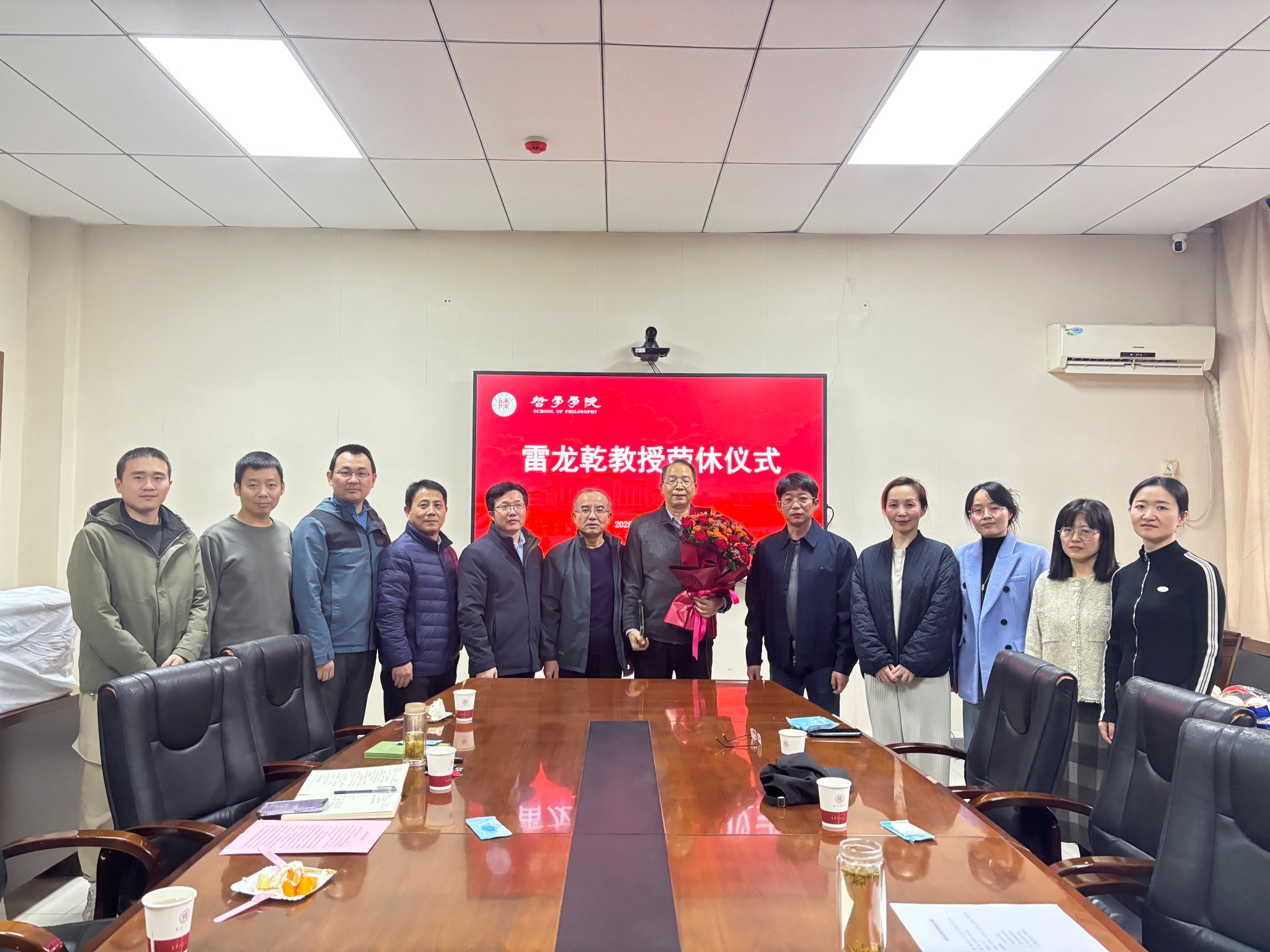 仪式最后,学院向雷龙乾教授赠送纪念品,全体人员合影留念。此次荣休仪式既致敬了雷教授的四十年教坛坚守,也彰显了学院尊师重教的人文底蕴,让“学术共同体、生命共同体”的理念更加深入人心。