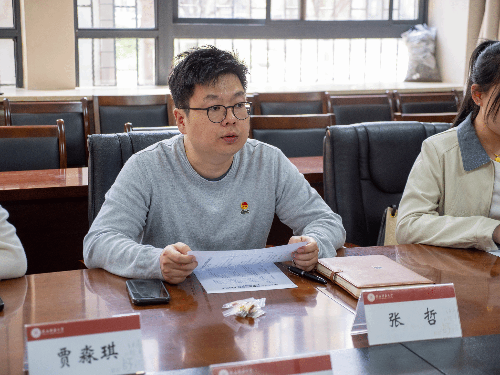 随后,张哲老师介绍了学院2025年度团员发展工作整体情况,对新发展团员在思想淬炼、学业精进、社会实践等方面的优异表现予以充分肯定,勉励大家以入团为契机,持续提升自我,勇担青年使命。