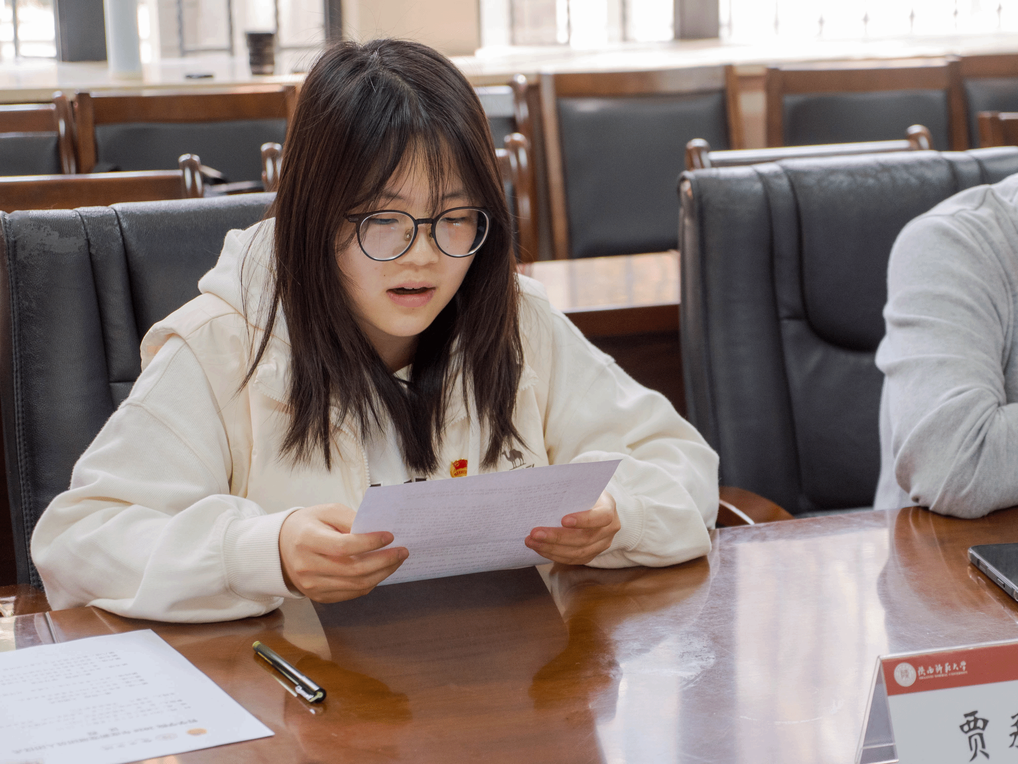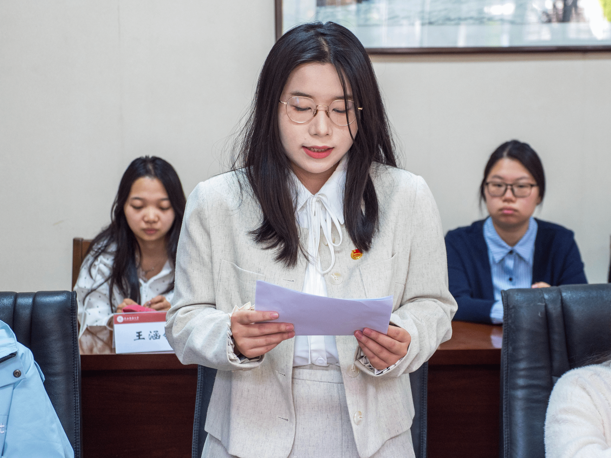 薪火相传,初心如磐。往届优秀团员代表、哲学新文科 2401 班王楚涵同学结合自身成长历程,分享团员身份带来的成长与感悟,鼓励新团员珍惜这份光荣,以实际行动诠释使命担当。新发展团员代表、社会学 2401 班赵诗琪同学真挚表达了加入团组织的激动与喜悦,同时许下郑重承诺,将以高标准严格要求自己,争做有理想、敢担当、能吃苦、肯奋斗的新时代青年。